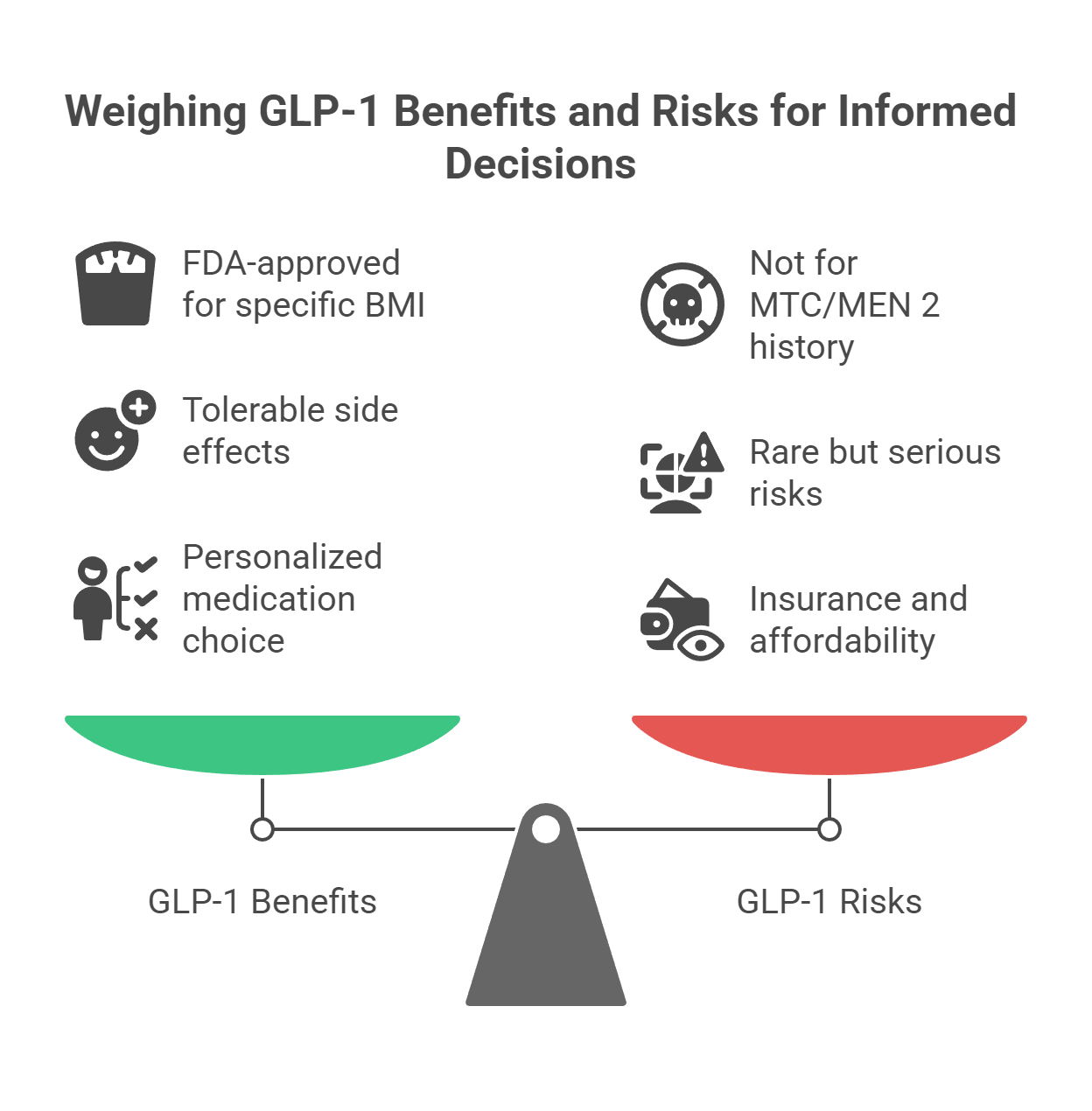 Since every patient is different, selecting a GLP-1 medication depends on several factors, including: